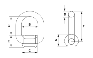 | típus | teherbírás (t) | A (mm) | B (mm) | C (mm) | D (mm) | E (mm) | F (mm) | G (mm) | saját tömeg (kg) |
