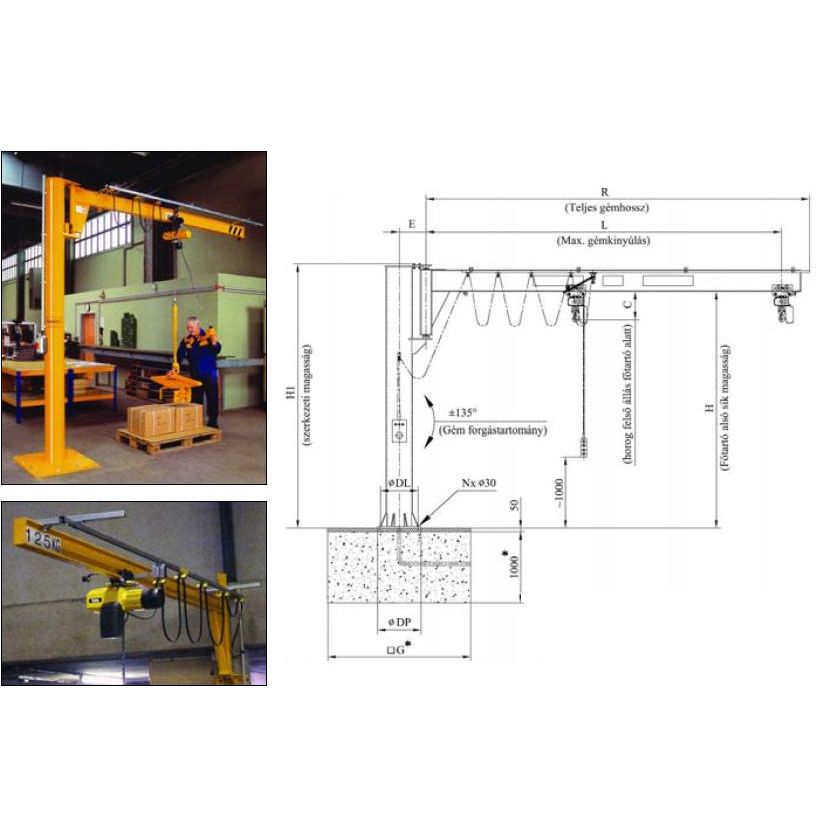 Az Euro-Ketten Kft. által forgalmazott oszlopos és fali forgódaruk a munkahelyi anyagmozgatás sokoldalú eszközei, amelyek a vevő igényeihez és az építési környezethez igazodva kínálnak egyedi megoldásokat. Széles opcióválaszték érhető el, beleértve a motoros forgatást és a kültéri kivitel lehetőségét is. A daruk rendelhetők kézi láncos emelővel vagy elektromos futómacskával, igény szerint úszókábeles áramellátással és főkapcsoló-szekrénnyel együtt. Masszív és megbízható kivitelük garantálja a biztonságos és hatékony munkavégzést ipari környezetben. Előnyök: – Oszlopos és fali kivitel, az építési környezethez igazodva – Igény szerint motoros forgatás és kültéri kivitel is elérhető – Választható kézi láncos emelő vagy elektromos futómacska – Úszókábeles áramellátás és főkapcsoló-szekrény opcióval – Robusztus, biztonságos és hosszú élettartamú megoldás