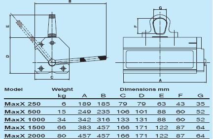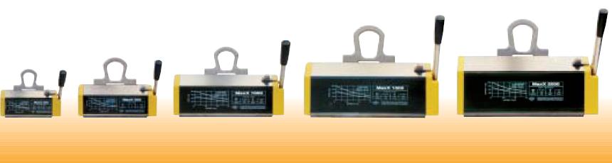 MaxX emelőmágnes sorozat 125 kg - tól 2000 kg - igHengeres és lapos terhek anyagmozgatására immár 25 éve használnak TECNOMAGNETE állandómágneses emelőket , amely a világon a legnagyobb számban eladott állandómágneses emelő. A MaxX emelők kis méretű , kis önsúlyú , ugyanakkor nagy teherbírású emelőmágnesek, a legújabb fejlesztések eredményei, saját súlyuk 20 - illetve 50 - szeresét képesek biztonsággal emelni, mozgatni. Az újítás: A megváltozott belső kialakítás forma nagy megbízhatóságot és robusztus megjelenést eredményezett . A szórt mágneses fluxust a semleges keret kiküszöböli , így a hatékonyság még nagyobb légrések esetén is optimális. A szabadalmaztatott új mágneskör és a nagy fajlagos energiájú mágnesanyag, nagy erőkoncentrációt eredményez, így a javasolt terhek esetén a biztonsági tényező 3. További kérdéssel forduljon munkatársainkhoz: - Fax.: 34/315-749