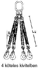 Poliészterszálas körkötél és heveder függesztékek | Az EKG függesztékek EN 818-4 szerinti fémelemekből és EK típusú körkötelekből áll. Az EHG függesztékek EN 818-4 szerinti fémelemekből és EH típusú emelőhevederből áll. Megrendelésnél kérjük megadni a megnevezést és a hosszúságot ( L2 ) . EKG típusnál 0,5 m-enkénti hossznövekedés lehetséges, míg a EHG-nél tetszés szerint | | EKG | EHG | Teherbírás áganként | Teherbírás ősszesen | | | to | to | EKG-1-10 | EHG-1-10 | 1,0 | 1,0 | EKG-1-20 | EHG -1-20 | 2,0 | 2,0 | EKG-1-30 | EHG-1-30 | 3,0 | 3,0 | EKG-1-40 | EHG-1-40 | 4,0 | 4,0 | EKG-1-50 | EHG-1-50 | 5,0 | 5,0 | EKG-1-60 | EHG-1-60 | 6,0 | 6,0 | EKG-1-80 | EHG-1-80 | 8,0 | 8,0 | | EKG-2-14 | EHG-2-14 | 1,0 | 1,4 | EKG-2-28 | EHG-2-28 | 2,0 | 2,8 | EKG-2-42 | EHG-2-42 | 3,0 | 4,2 | EKG-2-56 | EHG-2-56 | 4,0 | 5,6 | EKG-2-70 | EHG-2-70 | 5,0 | 7,0 | EKG-2-84 | EHG-2-84 | 6,0 | 8,4 | EKG-2-112 | EHG-2-112 | 8,0 | 11,2 | | EKG-3-21 | EHG-3-21 | 1,0 | 2,1 | EKG-3-42 | EHG-3-42 | 2,0 | 4,2 | EKG-3-63 | EHG-3-63 | 3,0 | 6,3 | EKG-3-84 | EHG-3-84 | 4,0 | 8,4 | EKG-3-105 | EHG-3-105 | 5,0 | 10,5 | EKG-3-126 | EHG-3-126 | 6,0 | 12,6 | EKG-3-168 | EHG-3-168 | 8,0 | 16,8 | | EKG-4-21 | EHG-4-21 | 1,0 | 2,1 | EKG-4-42 | EHG-4-42 | 2,0 | 4,2 | EKG-4-63 | EHG-4-63 | 3,0 | 6,3 | EKG-4-84 | EHG-4-84 | 4,0 | 8,4 | EKG-4-105 | EHG-4-105 | 5,0 | 10,5 | EKG-4-126 | EHG-4-126 | 6,0 | 12,6 | EKG-4-168 | EHG-4-168 | 8,0 | 16,8 |